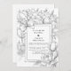 A refined monochrome floral design featuring hand-drawn peonies, roses, and a graceful ribbon framing the text. The detailed linework and architectural background give this piece a sophisticated, timeless look — ideal for elegant, classic, or modern black-and-white weddings.