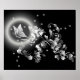 A white butterfly in a halo and white flowers on a black background. An elegant modern fantasy design.