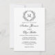 Black and White Floral Leafy Crest Monogram Wedding Invitations. Simple, elegant, just perfect; it features a hand drawn leafy floral wreath encircling a serif wedding monogram. It is personalized in elegant typography, and accented with classic calligraphy.