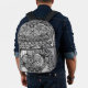 This black and white maximalist backpack features a rich tapestry of paisleys, florals, leaves, swirls, dots, and stripes, all hand-drawn into a garden of flowing, detailed linework. Inspired by ink illustration, the design offers a high-contrast look that’s both striking and wearable.