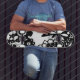 Black and White Floral Garden Graphic Pattern Skateboard