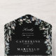 All in one wedding invitation featuring a beautiful floral greenery cascade, elegant typography, and monogram initials on a black background. The invitation includes a perforated RSVP card with your wedding website QR code and details. Designed by Thisisnotme©