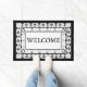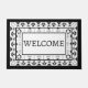 This whimsical black and white tile design doormat is classic and cute! The perfect way to warmly welcome friends and family to your home! This doormat reads "welcome".