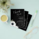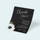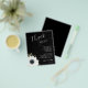 Affordable budget 4.5" x 5.6" lightweight paper flyers feature your details in chic white lettering accented with a black and white flower on a black background. These place setting thank you notes are perfect to put on top of the plates at your wedding rehearsal dinner or wedding reception. MATCHING items in our collection.