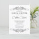 Copyright © Socialite Designs Inc. Customize this elegant black and white flourish bridal shower invitation for the bride-to-be special day. Pair this elegant card with the matching wedding products. Black and white is a beautiful colour combination for a wedding at any season. The colour combination provides formality and is great for formal and semi-formal weddings. The combination of black and white creates elegance that is sure to impress your guests and make your wedding day unforgettable.