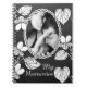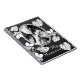 Stunning personalized jewelry and gifts with a modern and stylish black and white flower and leaf design framing your photograph in an oval link frame with a chalkboard background.