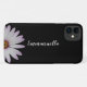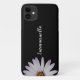 This iPhone 11 case is decorated with an elegant black and white design featuring a white daisy on the left and your name in a script font in the centre