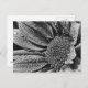 Black and white picture of a flower, taken early in the morning, while the morning dew was still on it.