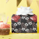 This unique wrapping paper features white flower entwined across a black background, providing a deep contrast to vivid red butterfly pattern. This gift paper is great for people who love butterflies or gardening.