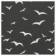 Black and white coastal seabird patterned fabric. Distressed look white seagulls on a black background.