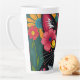 Black and White Folk Art Cat and Flowers Whimsical Latte Mug