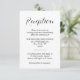 Vertical wedding reception enclosure card in black and white with formal wording informing your guests on the cocktail party and dinner time and location. The back can be personalized with your website or accommodation details as needed.