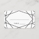 These modern wedding escort cards feature a black geometric design, with a line for your guest's name and table number, on a white background. The reverse of the card is black.