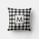 Black and White Gingham Pattern, Custom Monogram Throw Pillow