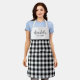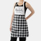 A stylish, modern, personalized apron. This design has a black and white gingham pattern with a stylish script text for your name and classic style small type below for your location. A simple, modern, farmhouse styled apron.