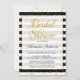Black and White Metallic Gold Foil Hearts Confetti Striped Bridal Shower Invitation for a bride to be celebration. Please contact the designer for customized matching items.