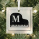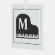 Black and White Grand Piano Monogram Pianist Glass Ornament