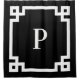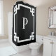 Decorative black and white Greek key style border and modern serif monogram shower curtain.