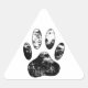 Black and White Grunge Dog Paw Print Triangle Sticker