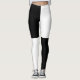 Leggings in black and white half and half design. Each leg is printed in alternating half black and half white. Unique, bold design.
