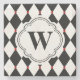 Black and White Harlequin Pattern with Monogram Stone Coaster