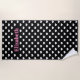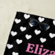 Classic, small white hearts on a black background create a simple pattern for expressing love anytime! Shown here on a summer beach towel. You can adjust the size of the pattern any way you prefer and change the black background colour if desired. Personalize it with a name or any text.
