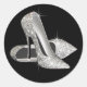 Elegant black and white high heel shoe sticker. This pretty silver high heel shoe sticker is easily customized for your event by simply choosing the "Customize it!" button to begin adding your event details, font style, font size & colour, and wording. Please note - all of the stickers, cards and invitation designs you will find on Zazzle are printed graphics with no actual jewels, bows, raised, embossed, or added parts or pieces.