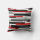 Black and White Horizontal Lines with Red Accent Throw Pillow