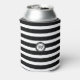 Contemporary Black and White Horizontal Striped Personalized Monogram can cooler gives whatever you're drinking a bit of class with a classic but contemporary look. Personalize it by adding images and text of your own, or remove the ovals and monogram if you like. Be sure to look at our matching and coordinating customizable home decor and accessories in our store at zazzle.com/DIYDecor.