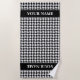 Black and white houndstooth pattern personalized Beach Towel. Classy hounds tooth check print for men and women. Dogstooth design with custom background colour. Elegant design for beach or pool.