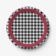 Black and white houndstooth with crimson accent paper plate