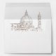 These simple and elegant, black and white wedding envelopes feature classic, old-world style with romantic calligraphy. There is also a vintage illustration of an Italian Renaissance building on the back flap and interior. Set the tone for your luxe, sophisticated Italy inspired wedding with this classy, minimalist design. Your pre-printed return address goes onto the back flap.