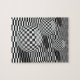 Black and white illustration with balls on a chess jigsaw puzzle