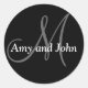 By Elke Clarke©2009. More designs at WhiteWhimsicalWeddings.com and WhiteWhimsicalWeddngs.blogspot.com. The design is simple yet classic and fits with any invitation and wedding theme. THE MONOGRAM GALLERY allows you to customize the names, monogram and colours of this sticker. Just click on the "CUSTOMIZE" button and follow the prompts.