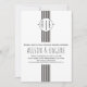 Black white stripes and monogram wedding couples shower invitation. It showcases vertical stripes in the centre with a circle with your initials and two little hearts and your text. The black includes a black and white striped pattern.