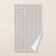 This modern towel set features thin black stripes on a warm ivory-cream background for a soft, understated look. The narrow stripe pattern feels calm and timeless, adding quiet structure. An easy, versatile choice for minimalist, Scandinavian-inspired, or relaxed neutral bathrooms.