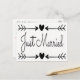 Proudly tell the world you and your sweetheart just tied the knot with this fun just married love arrows and hearts wedding announcement postcard. Black and white Just Married announcement postcards are the economical alternative to expensive wedding announcements as they require no extra envelopes and need less postage to mail.