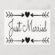 Black And White Just Married Heart Arrows Wedding Announcement Postcard