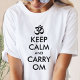 A modern parody on a vintage design in black. You can customize the font style. If you need to reduce the font size, to maintain the typography you can select the entire design and reduce the size at one time. A Keep Calm and Carry On parody for ladies that mediate.