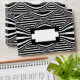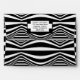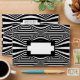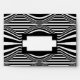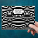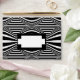 An envelope with a stylish black and white address panel with a drop shadow which gives the illusion of a stick on label. A smaller version of the label is repeated on the back which can be customized with your return address. This version has an abstract Op Art style background.