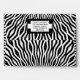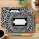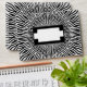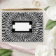 An envelope with a stylish black and white address panel with a drop shadow which gives the illusion of a stick on label. A smaller version of the label is repeated on the back which can be customized with your return address. This version has a sun ray black and white wrap around design.