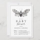 Minimalist black and white moth butterfly baby shower invitation. Books for baby request on back.