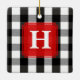 Black and White Lumberjack Plaid Monogram Ceramic Ornament