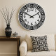 black and white mandala ethnic floral bohemian wall clock, monochrome mandala decor, spiritual timepiece, tribal pattern clock, floral symmetry design, modern boho clock, zen home accessory, cultural art clock