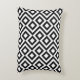 This stylish black and white geometric pattern accent pillow features an original ornamental design. White meanders angle around black diamonds containing white diamonds. Black zigzags provide subtle separation between the winding paths.