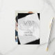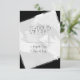Theme Parties' black and white minimalist casual wedding RSVP card design features your favourite engagement photo angled as a design element, giving your invitation modern geometric style. And your engagement picture is automatically is repeated on the reverse side in full colour. The design is accented with hand-lettered typography paired with modern block text. #MinimalistWedding #ModernWedding #PhotoInvitation #CasualWedding