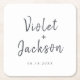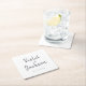 Modern minimalist wedding paper coasters feature bold handwritten brushy script bride and groom's name in charcoal black and white colour, simple and stylish.