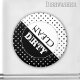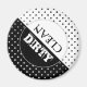 Dishwasher magnet featuring a simple black and white design with polka dots.