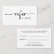 These modern, black and white small business referral cards feature elegant handwritten script typography on a white background, for a simple and minimalist look your customer will love. This understated yet stylish design will work for almost any type of business, from a makeup artist, to a hair stylist, to a makeup artist, or even spa or retail. The back contains plenty of room for you to totally customize with your store or company information.