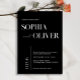 Black and white modern minimalistic typography wedding Invitation. Customize this design with your personal info and your initial on the back side.